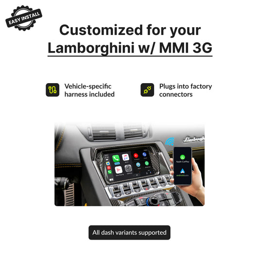 Enhance your Lamborghini's infotainment experience with our premium technology solutions. Our modules are designed to integrate seamlessly with your vehicle's sophisticated systems while adding modern connectivity features like wireless Apple CarPlay and Android Auto.