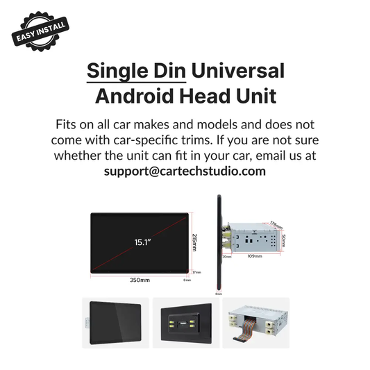 - Premium Single Din 15.1" Universal CarPlay & Android Auto Head Unit - Fits where factory radios are narrower