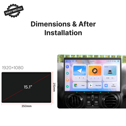 - Premium Single Din 15.1" Universal CarPlay & Android Auto Head Unit - Fits where factory radios are narrower