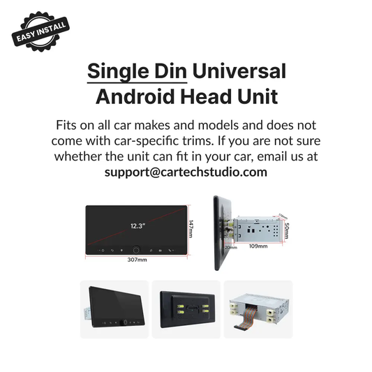 - Universal Single Din 12.3" Premium CarPlay & Android Auto Head Unit