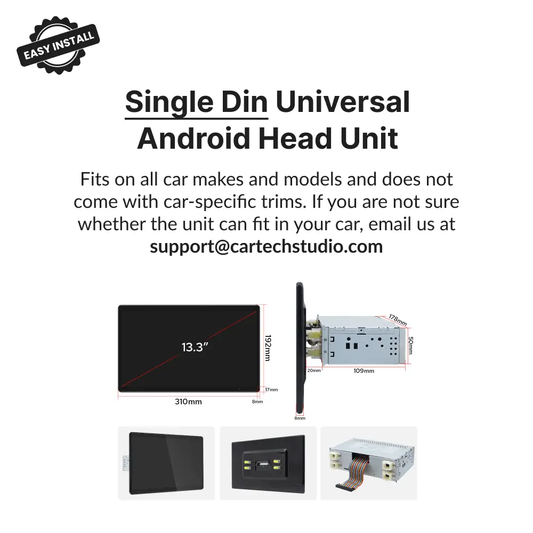 - Universal Single Din 13.3" Premium CarPlay & Android Auto Head Unit